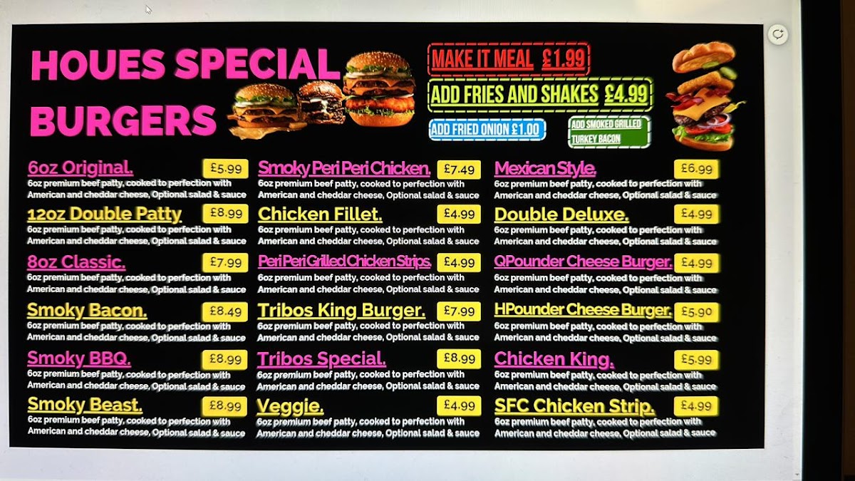 In summary, the Tribos Menu delivers a fiery fusion of flavour and value. It stands out in Feltham for its bold seasoning, consistent grill technique, and energetic vibe-a local gem for lovers of spice and grilled goodness.